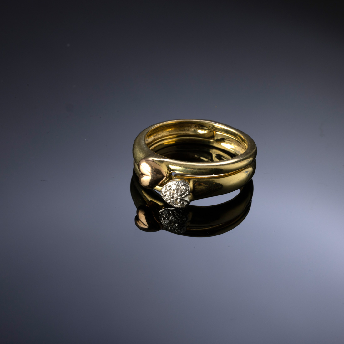 Em ouro português de 19.2Kt., contraste veado e galo (pós 1985) cravejado com diamantes brilhante. Sinais de uso.