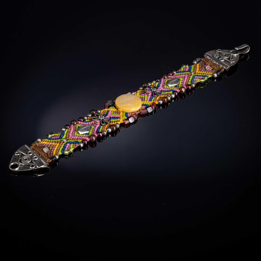 Em prata inglesa de 925, marcas da Cidade de Londres, Séc. XX, outros materiais e pedraria (madrepérola). Sem marcas, ao abrigo do Decreto-Lei n.º 120/2017. Sinais de uso.