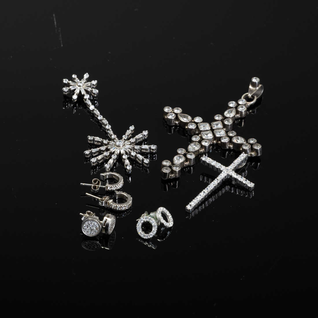 Em prata de 925, alguns marcados, outros sem marcas, ao abrigo do Decreto-Lei n.º 120/2017, cravejada com zircónicas. Sinais de uso.