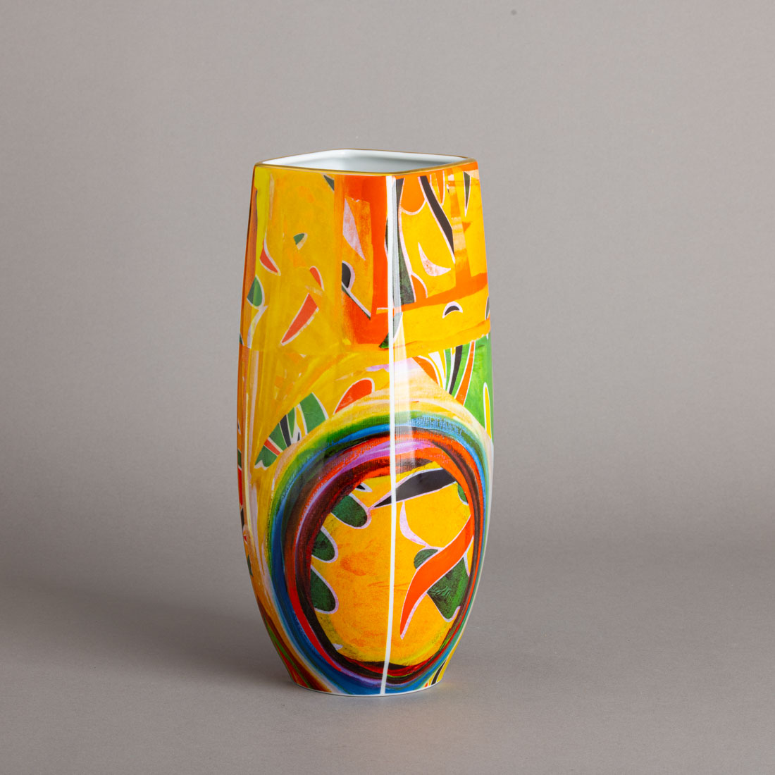 Em porcelana moldada, decoração policromada. Da designer Tóia Lemann. Sinais de uso.
