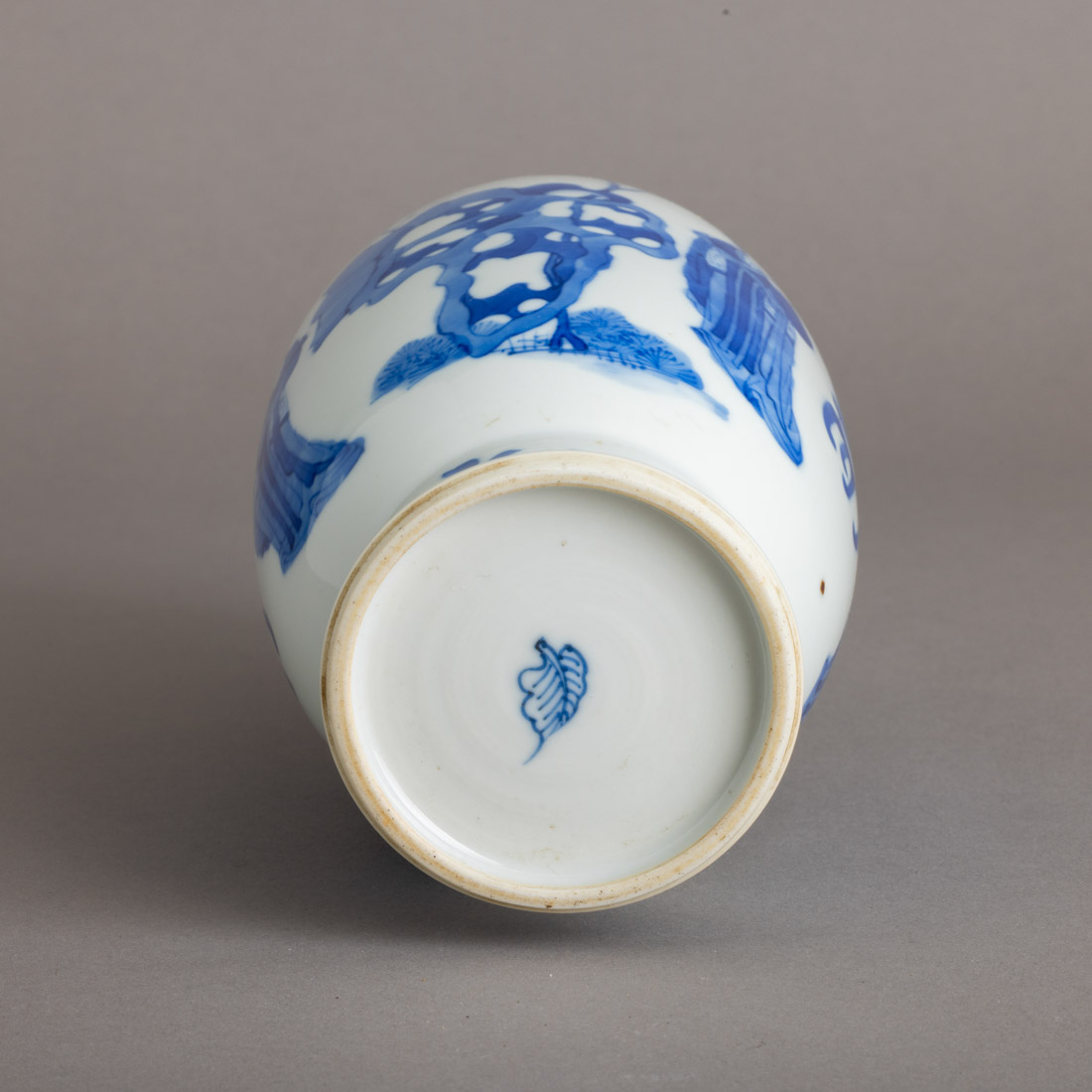 Em porcelana da China, decoração a azul "cenas do quotidiano". Marcada. Sinais de uso.