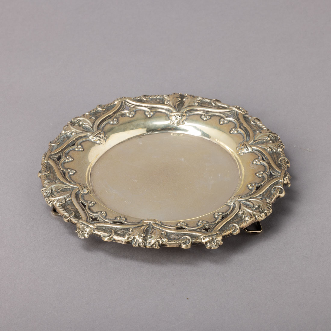 Em prata portuguesa contraste javali (1887-1937) de 833, decoração relevada e vazada, no estilo neomanuelino. Sinais de uso, pequenas amolgadelas.