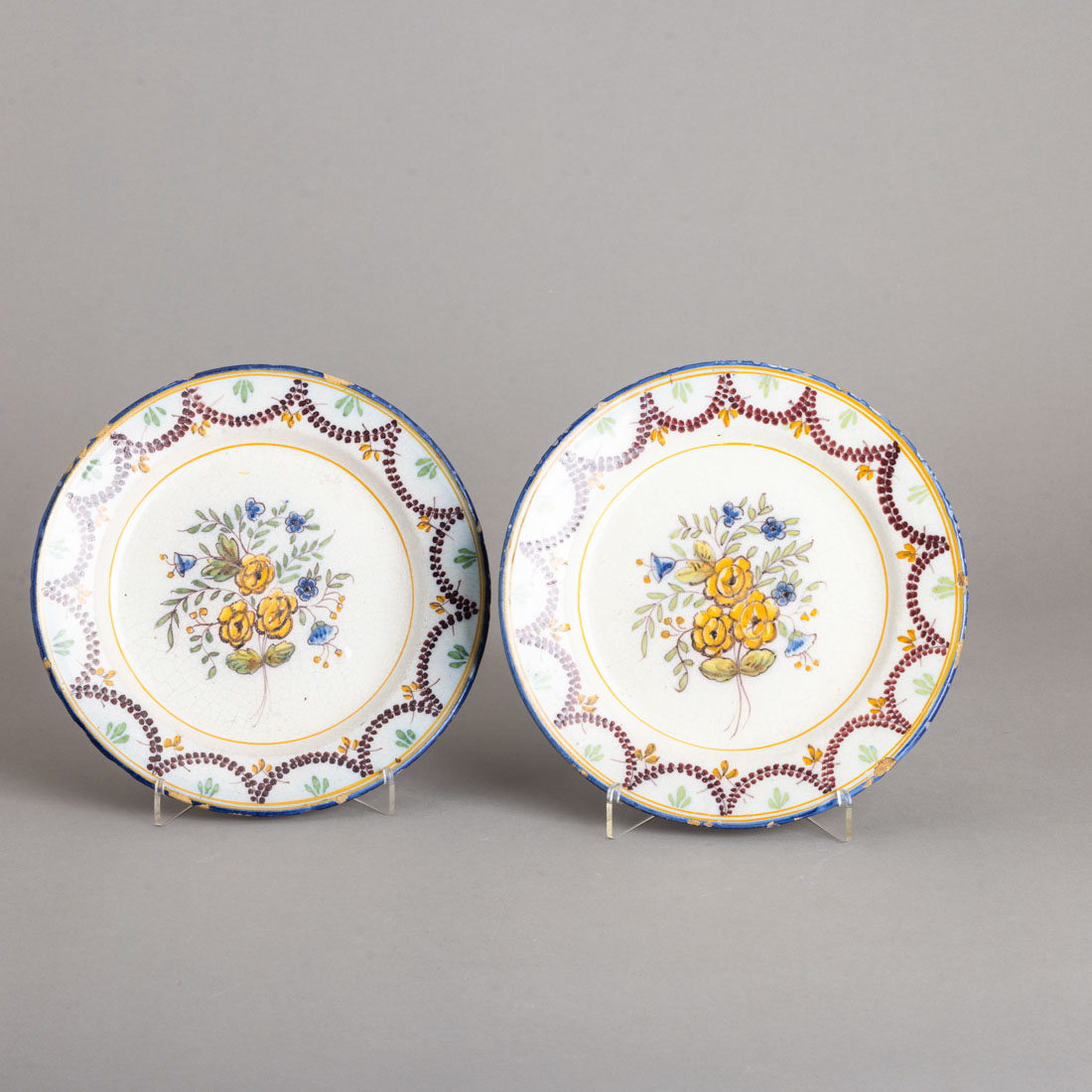 Em faiança portuguesa da Fabrica Constância, Lisboa, decoração policromada com arranjos florais e grinaldas na aba. Esbeiçadelas e craquelé.