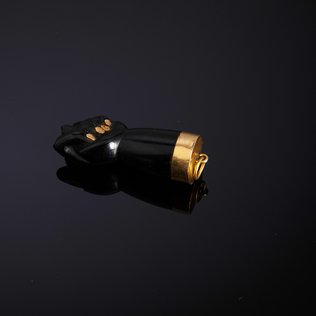 Em azeviche, aplicações em ouro. Sem marcas, ao abrigo do Decreto-Lei n.º 120/2017. Sinais de uso.