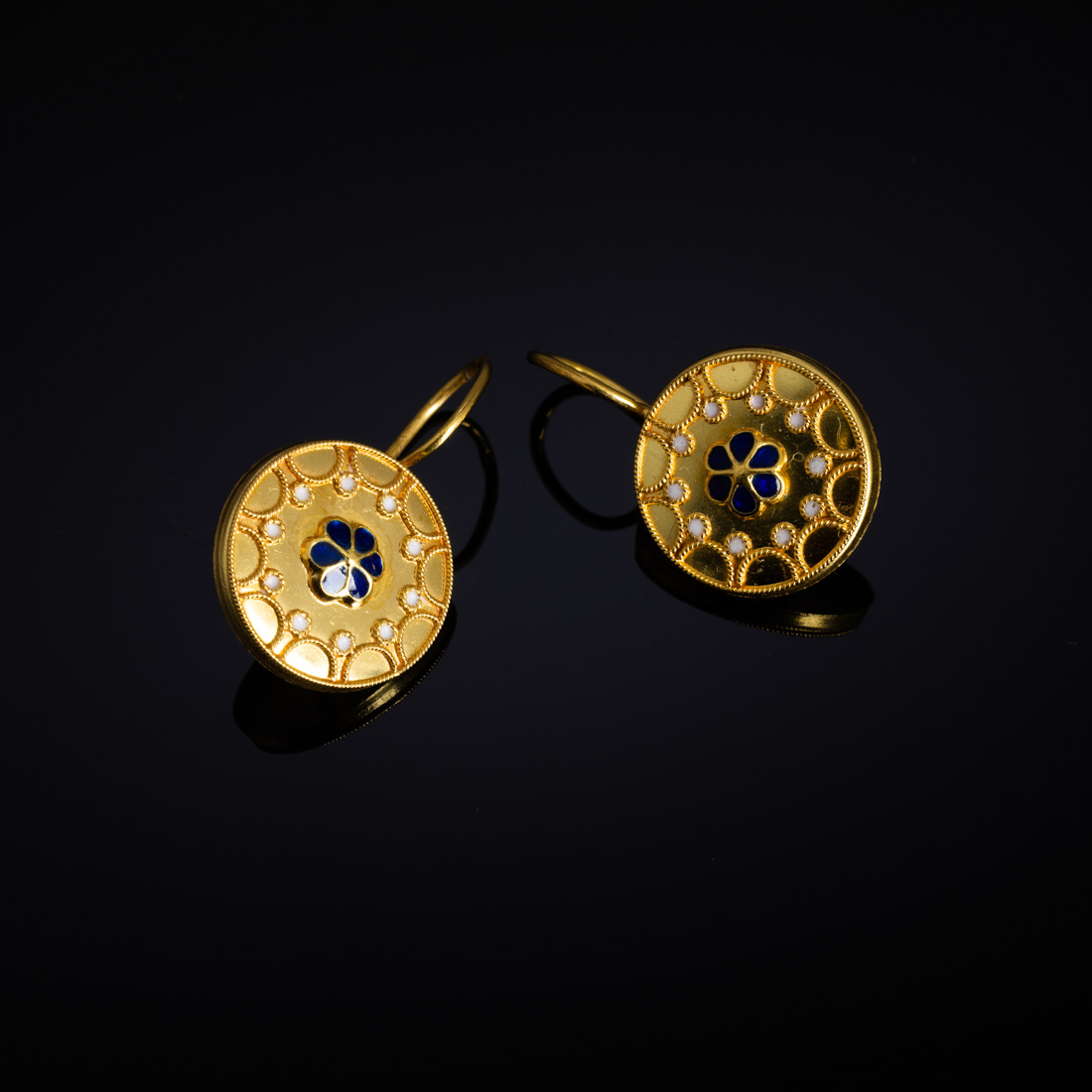 Em ouro português de 19,2Kt., contraste veado (pós 1985) decoração relevada com esmaltes policromos. Sinais de uso.