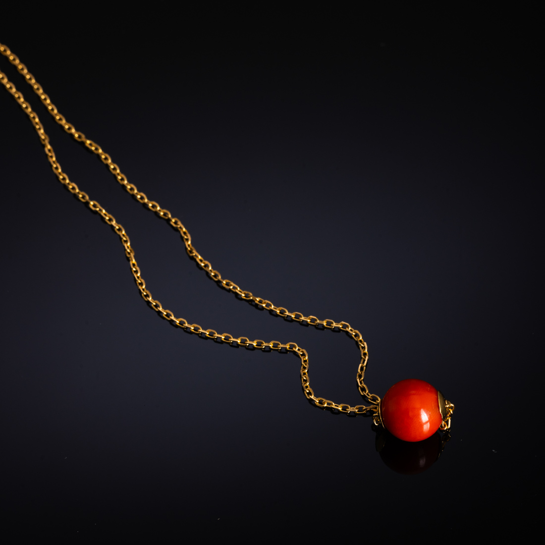 Em ouro português de 19,2Kt., contraste veado (pós 1985) com conta em tom coral. Sinais de uso.