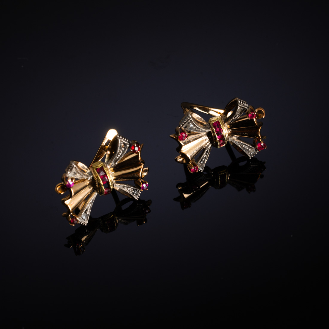 Em ouro e prata cravejado com vidros tom rubi. Sem marcas, ao abrigo do Decreto-Lei n.º 120/2017. Pequenos defeitos.