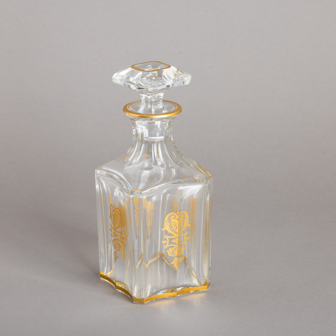 Em cristal de Baccarat, modelo Harcourt Empire criado em 1841, decoração a dourado. Francês. Sinais de uso.