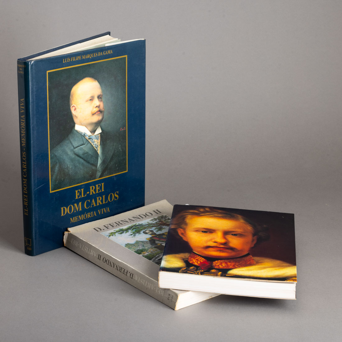 "El-Rei Dom Carlos memória Viva" de Luís Filipe Marques da Gama, edições Inapa; "D. Fernando II Rei-Artista" de José Teixeira, Fundação da Casa de Bragança 1986 e "D. Luís Duque do Porto e Rei de Portugal" do Palácio da Ajuda. Sinais de uso e pequens defeitos.
