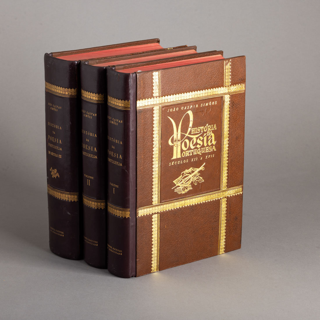 Das origens aos nossos dias acompanhada de uma antologia Por João Gaspar Simões e Desenhos de Bernardo Marques, . Três volumes. Empresa Nacional de Publicidade, Sinais de uso e picos de acidez.