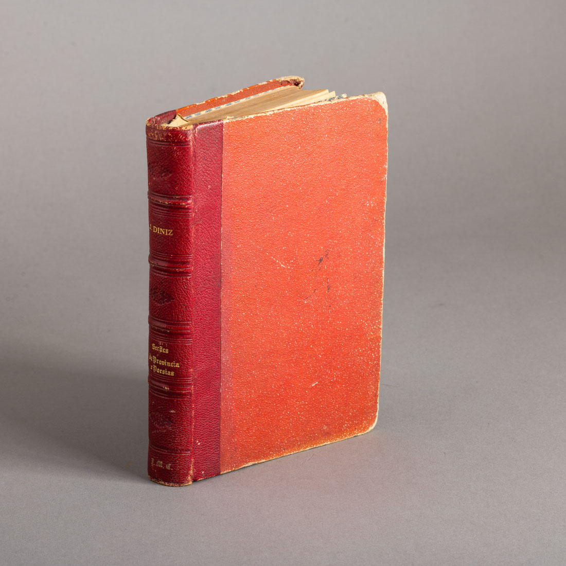 Por Júlio Diniz, 2ª. Edição. As apprehensões de uma Mãe. O Espolio do Senhor Cypriano. Os Novellos da Tia Philomela. Uma Flor D’Entre o Gelo. Livraria Morè, Porto 1873, Sinais de uso, pequenos defeitos e picos de acidez.