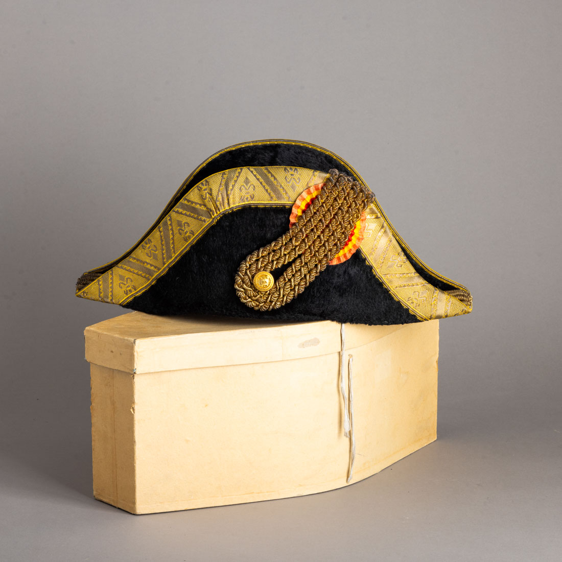 Em tecido e outros materiais, com galões dourados. Fabrico Victor Moreno, Madrid. Com caixa. Sinais de uso.