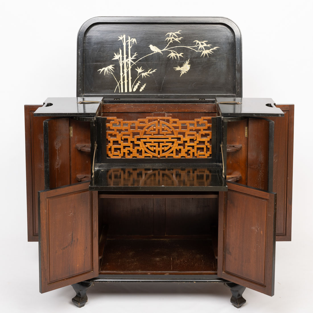 Em madeira lacada a negro, decoração a dourado "bambus e pássaros". Pequenas falhas, defeitos e xilófagos.