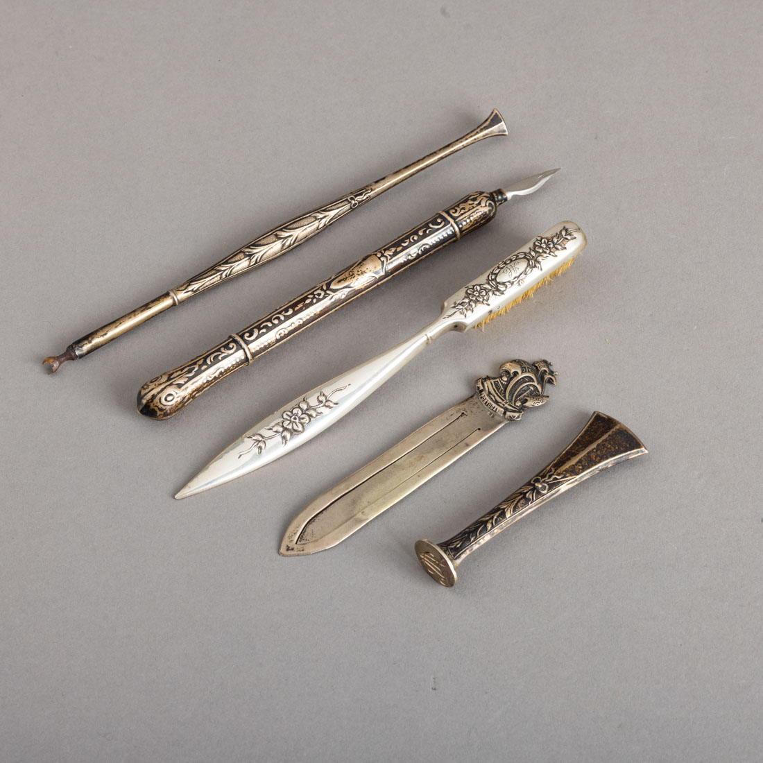597. DUAS CANETAS DE APARO, SINETE, ESCOVA DE DENTES E MARCADOR PAGINA