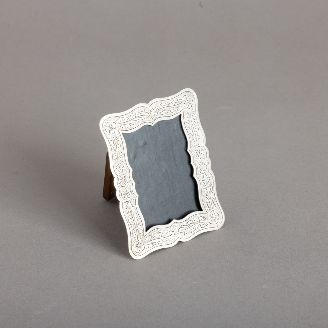 Moldura em prata portuguesa contraste águia (pós 1985) de 835, decoração gravada com elementos vegetalistas. Sinais de uso.