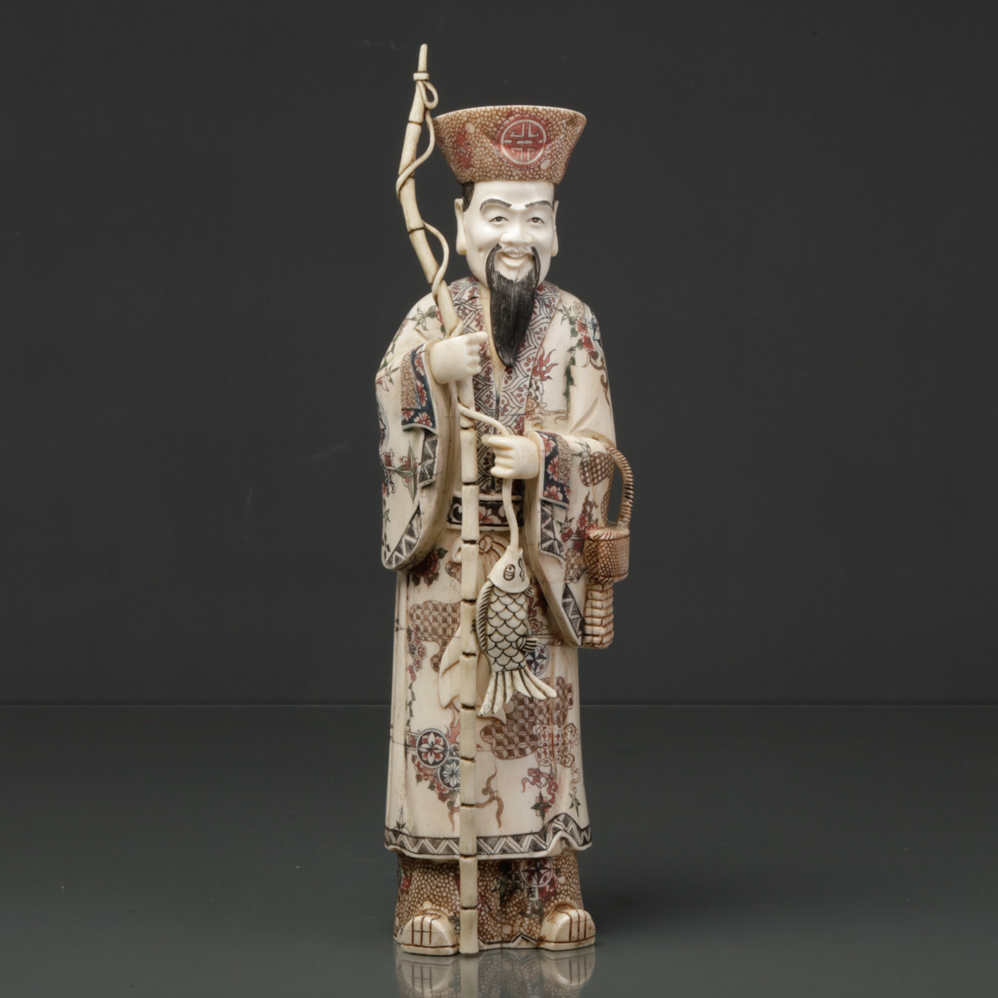 Escultura revestida a placas de osso e marfim esgrafitado e colorido, Séc. XX (1ª metade).