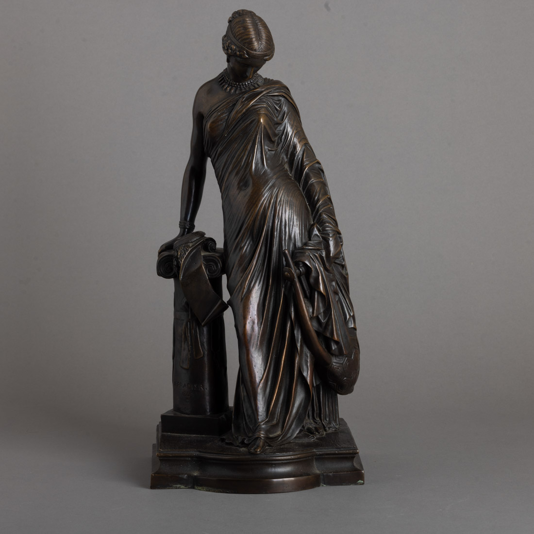 Escultura em bronze patinado, assinada e datada "J. Pradier / 1848" com carimbo da fundação "V P". Sinais de uso.