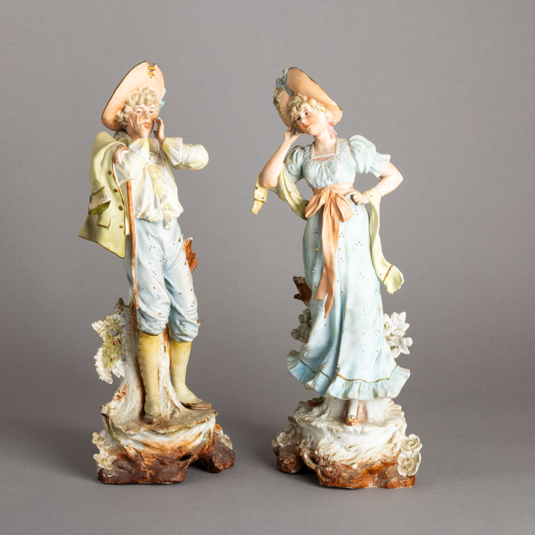 Esculturas em biscuit, decoração policromada. Europa, Séc. XIX/XX. Pequenas falhas e colagem.