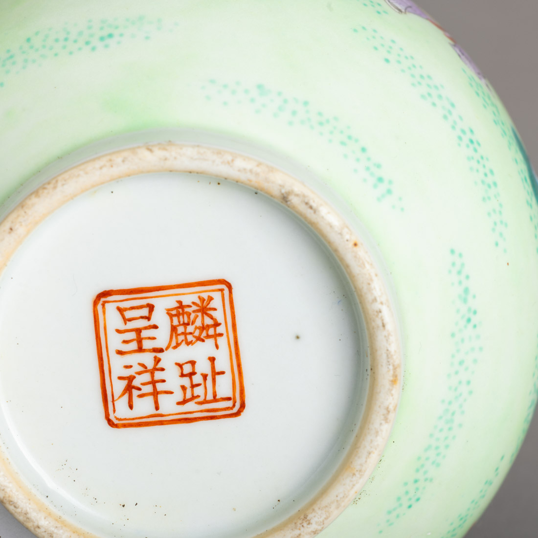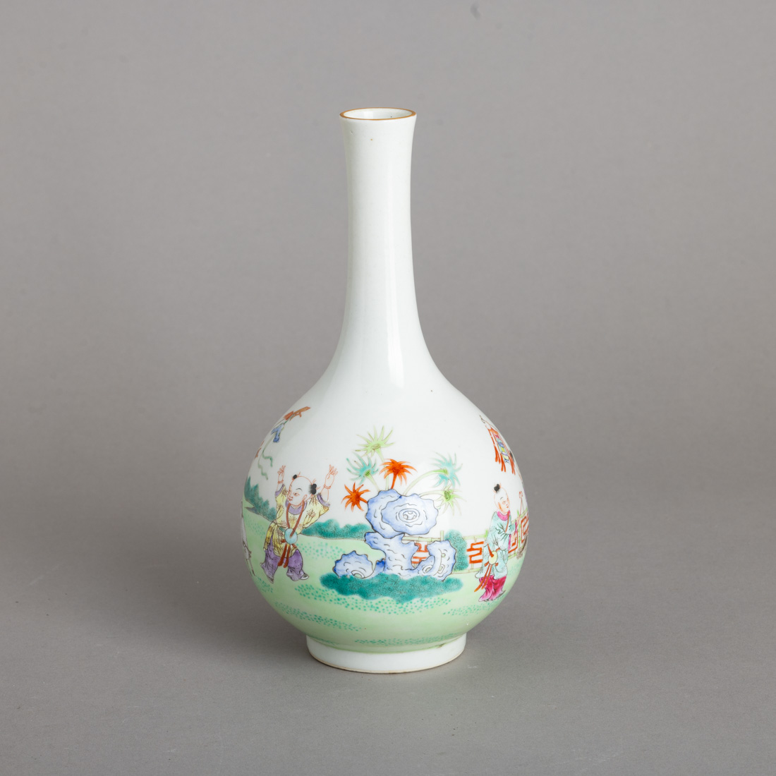 Em porcelana da China, decoração policromada "paisagem com meninos a brincar". Marcada. Sinais de uso.
