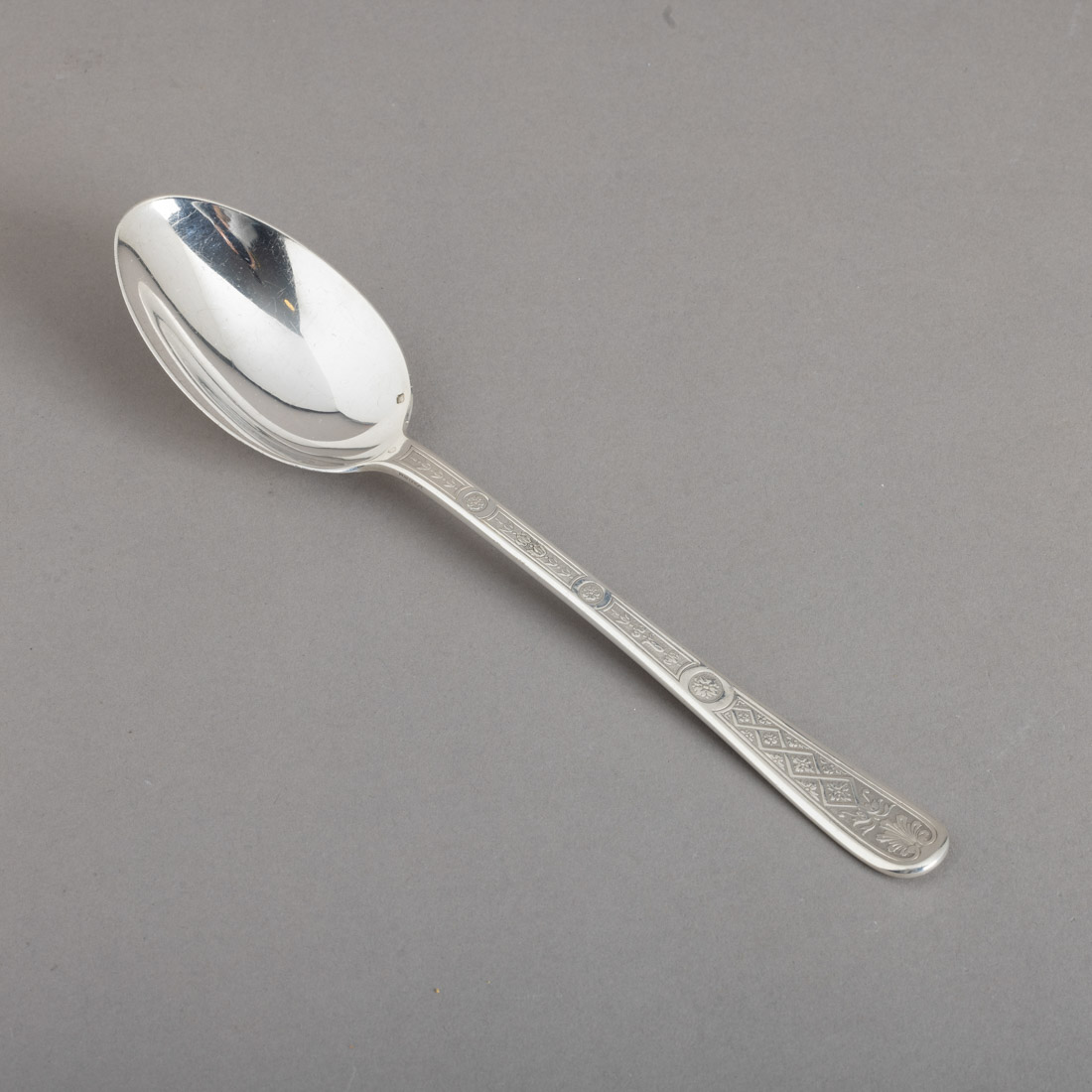 Em prata francesa de 925, marca de garantia de teor e marca de ourives de Emile Puiforcat (1857-1945), decoração relevada com elementos vegetalistas. Sinais de uso.