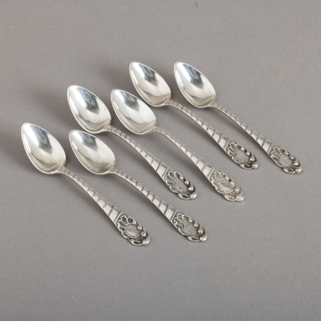 769. CONJUNTO DE SEIS COLHERES DE CAFÉ Em prata javali de 833. P.A. 87 g.