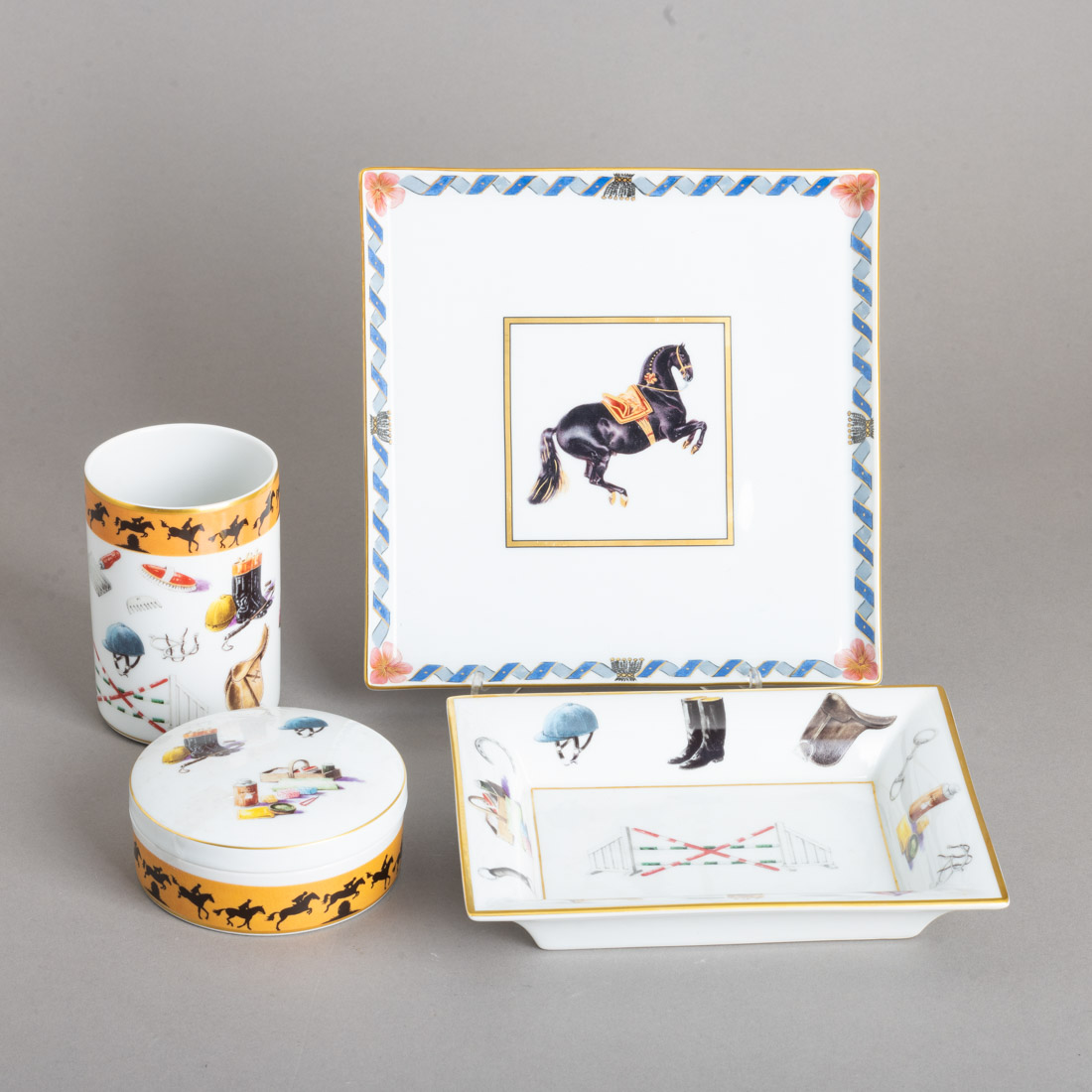 Em porcelana moldada (2001), decoração policromada e dourada "Sport", e Atlantis "Cavalo Lusitano" design de David Guerra. Sinais de uso.