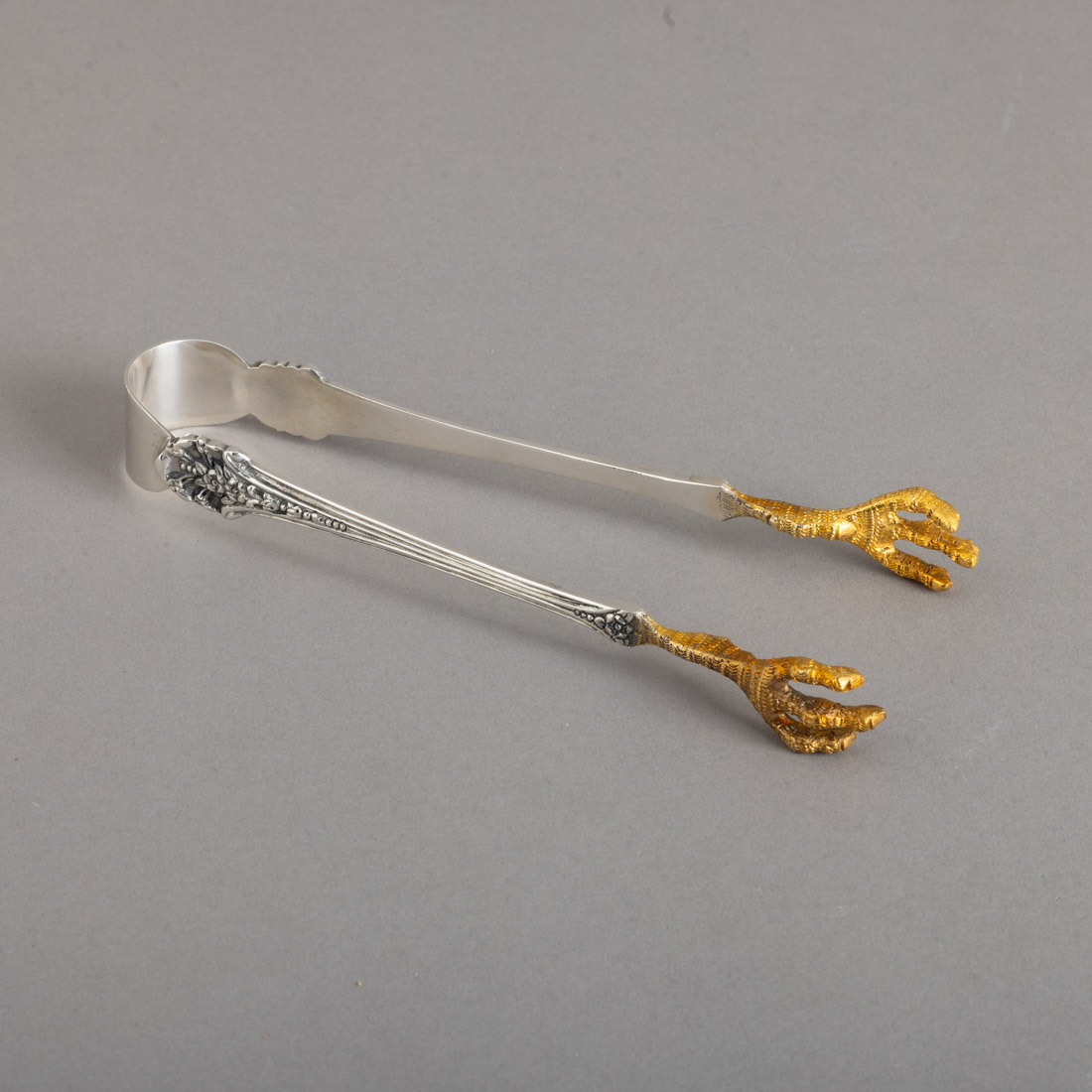Em prata portuguesa contraste águia (1938-1984) de 833, decoração relevada "flores", parcialmente dourada, terminais de garra. Sinais de uso.