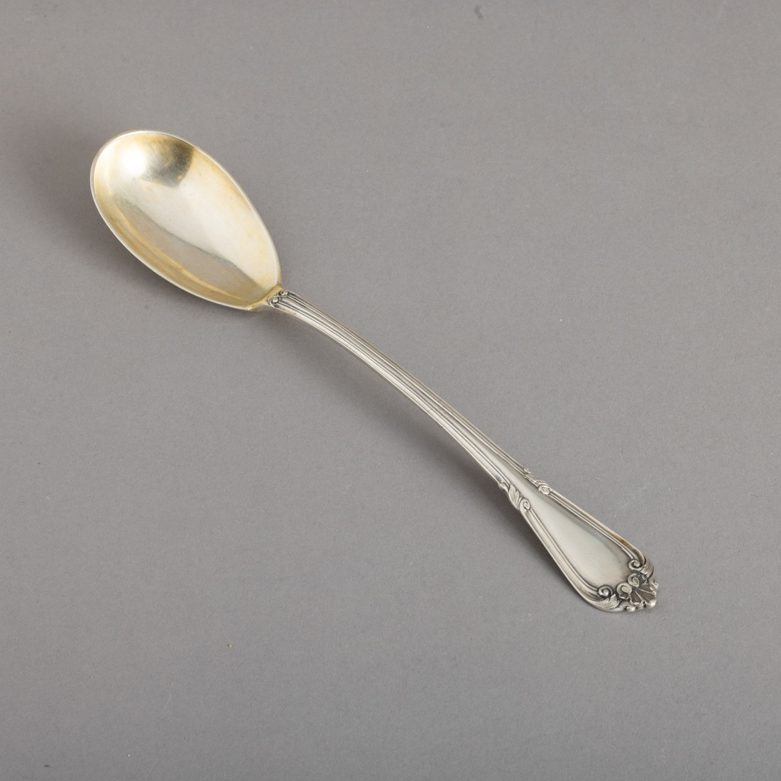 Em prata portuguesa contraste javali (1887-1937) de 833, marcada A. X. Carvalho, Lisboa, decoração relevada com enrolamentos e concheado. Sinais de uso.
