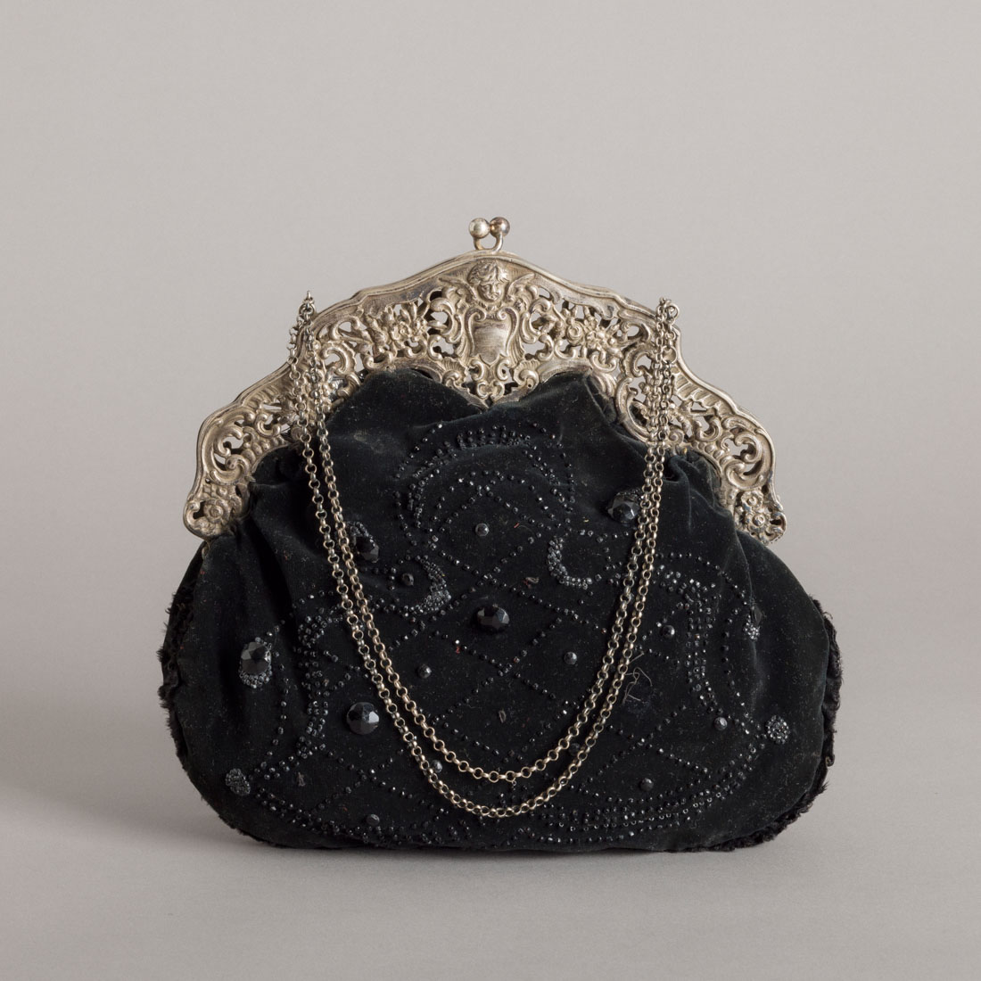 Em prata alemã de 800, marcas de garantia de teor (pós 1888), decoração relevada e vazada "Putti e elementos vegetalistas", veludo com aplicação de missangas. Sem marcas portuguesas, ao abrigo do Decreto-Lei n.º 120/2017. Sinais de uso e pequenas falhas.Dim.: 40x21,5 cm.