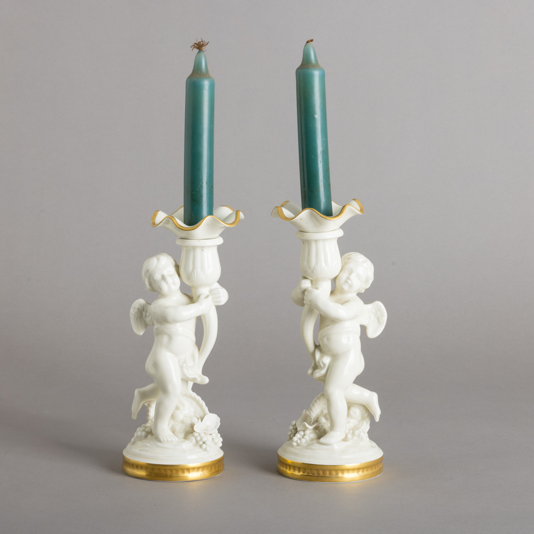 146. PAR DE CASTIÇAIS "CUPIDO COM CORNUCÓPIA" DA VISTA ALEGRE