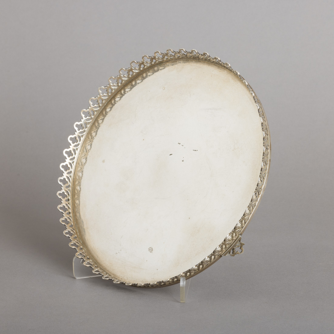 Em prata portuguesa contraste águia (1938-1984) de 833, decoração lisa, gradinha e pés vazados. Sinais de uso.