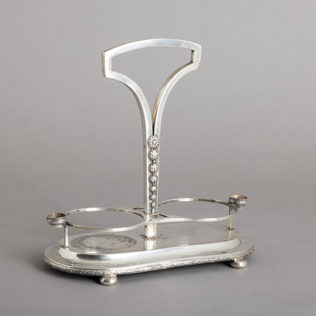 Em prata portuguesa contraste javali (1887-1937) de 833, decoração relevada "elementos vegetalistas". Pequenos defeitos, pés soldados e oxidações.