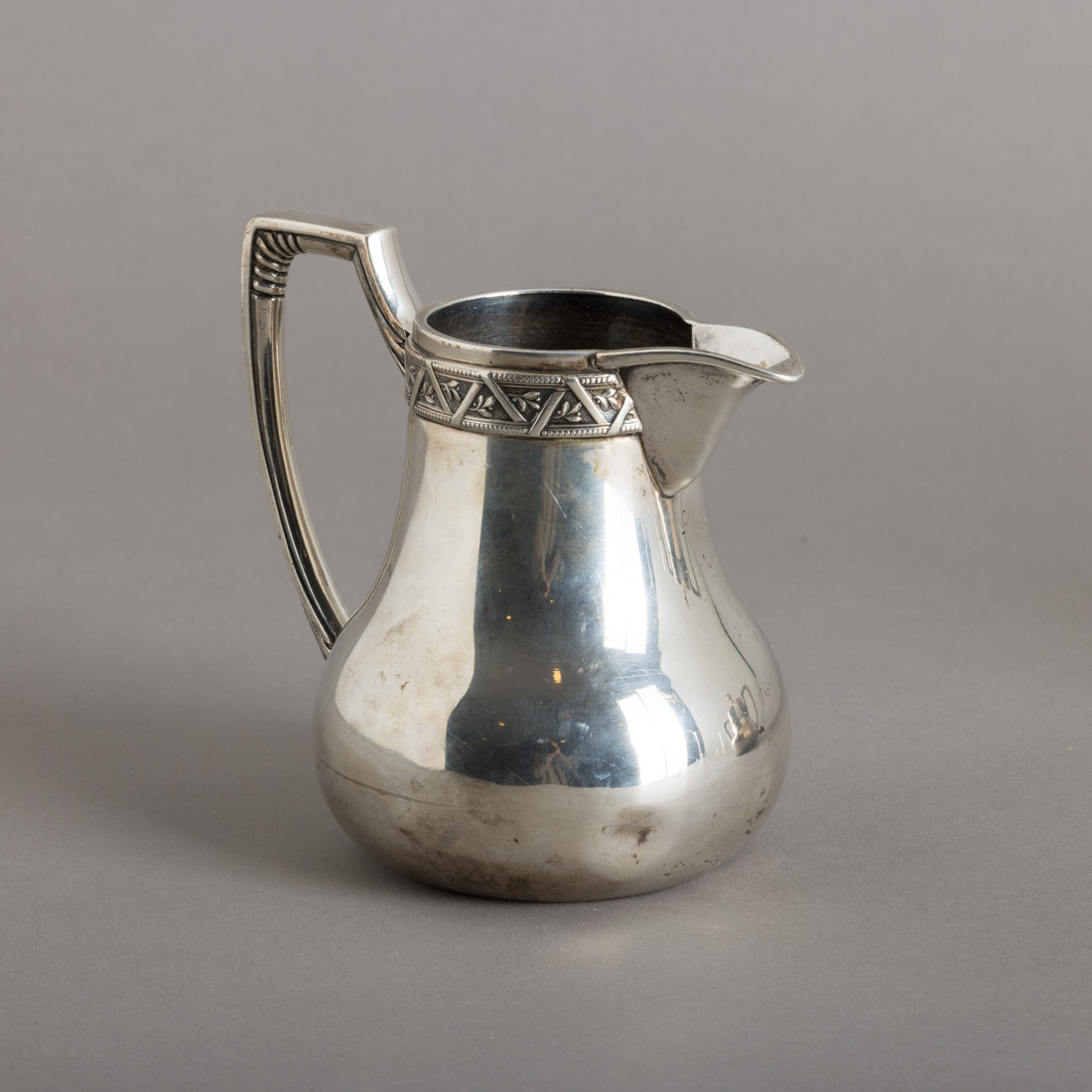 Em prata portuguesa contraste javali (1887-1937) de 833, decoração com friso relevado. Sinais de uso e amolgadela.