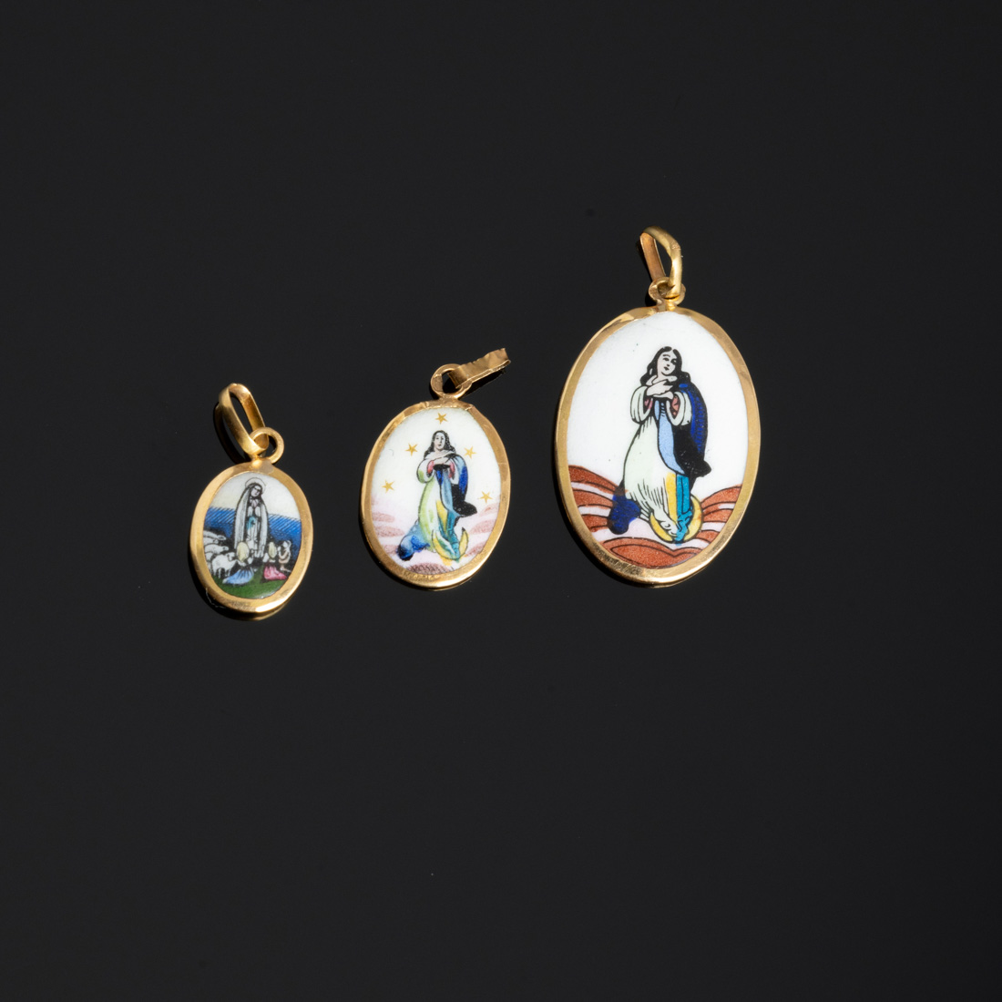 288. TRÊS MEDALHAS "N. S. DA CONCEIÇÃO" E "N. S. DE FÁTIMA"
