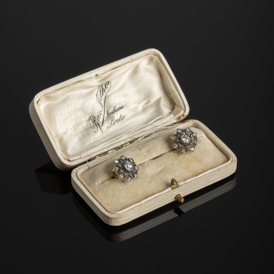 Em ouro e prata cravejada com diamantes em talhe antigo de brilhante e rosa, com aproximadamente 0,50 ct. Sem marcas, ao abrigo do Decreto-Lei n.º 120/2017. Sinais de uso.