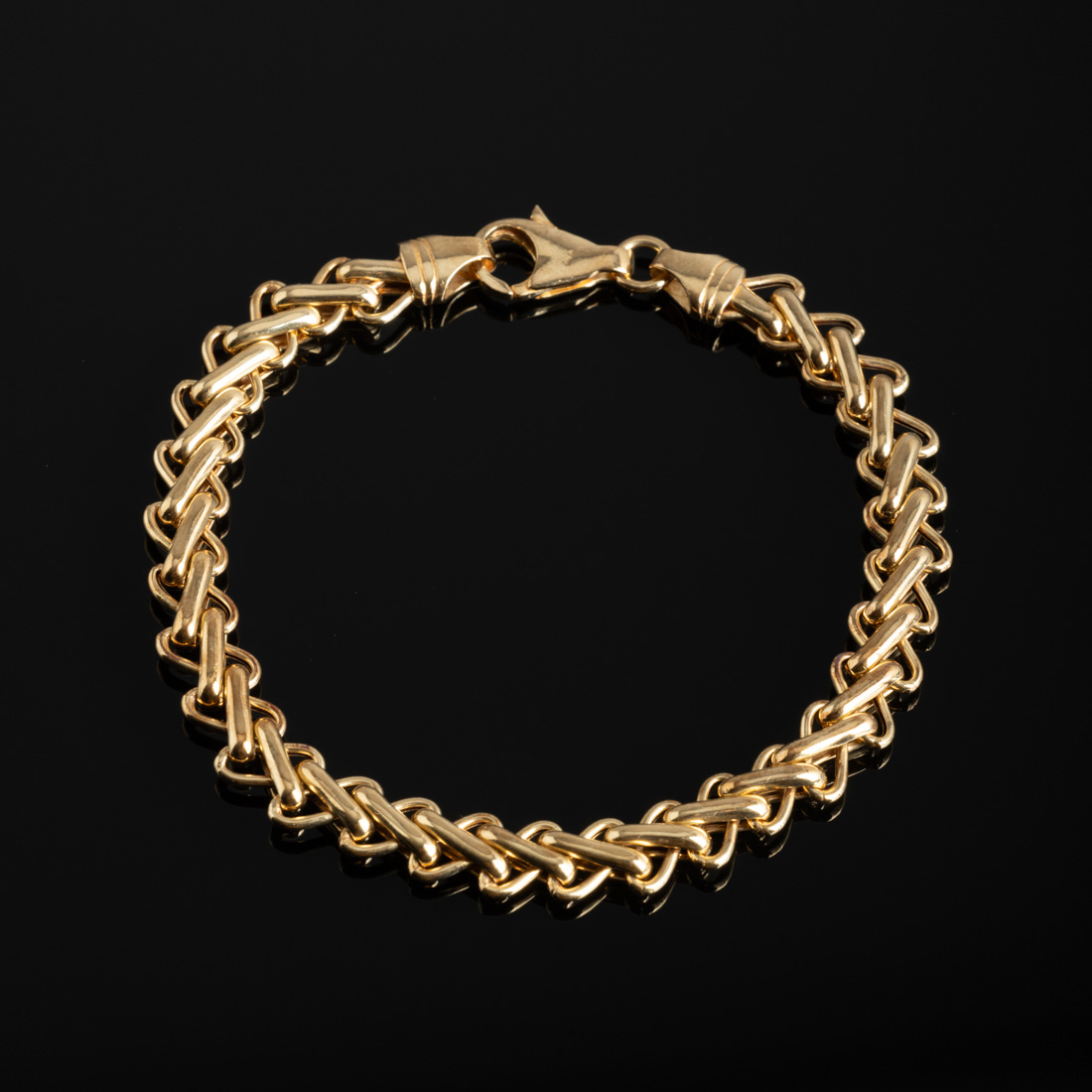 Em ouro português de 19,2Kt., contraste veado (pós 1985), malha de fantasia. Sinais de uso.