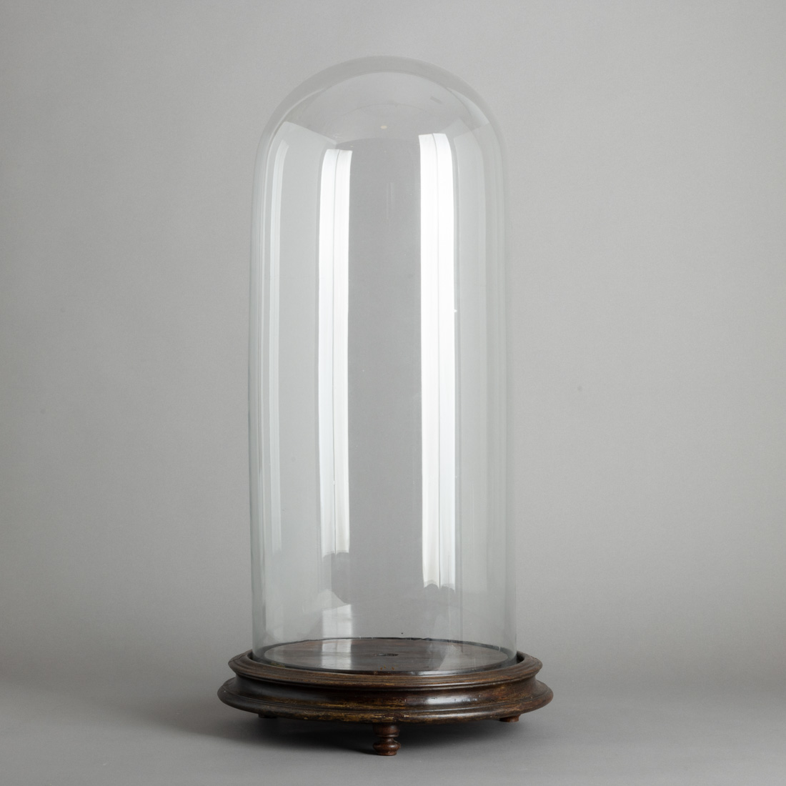 Em vidro moldado, base em pau santo, pés torneados. Séc. XIX/XX. Sinais de uso e pequenos defeitos na base.