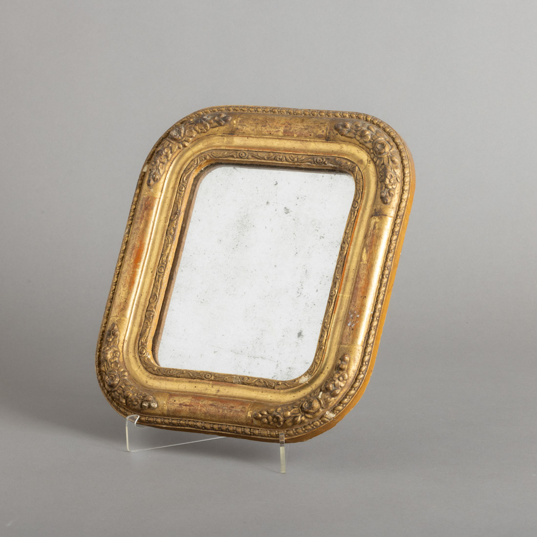 Moldura em madeira e gesso relevado e dourado "flores". Séc. XIX/XX. Sinais de uso e pequenas falhas.