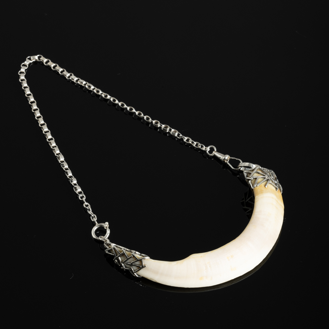 Em prata portuguesa contraste águia (1938-1984) de 833, com dente de javali. Sinais de uso.