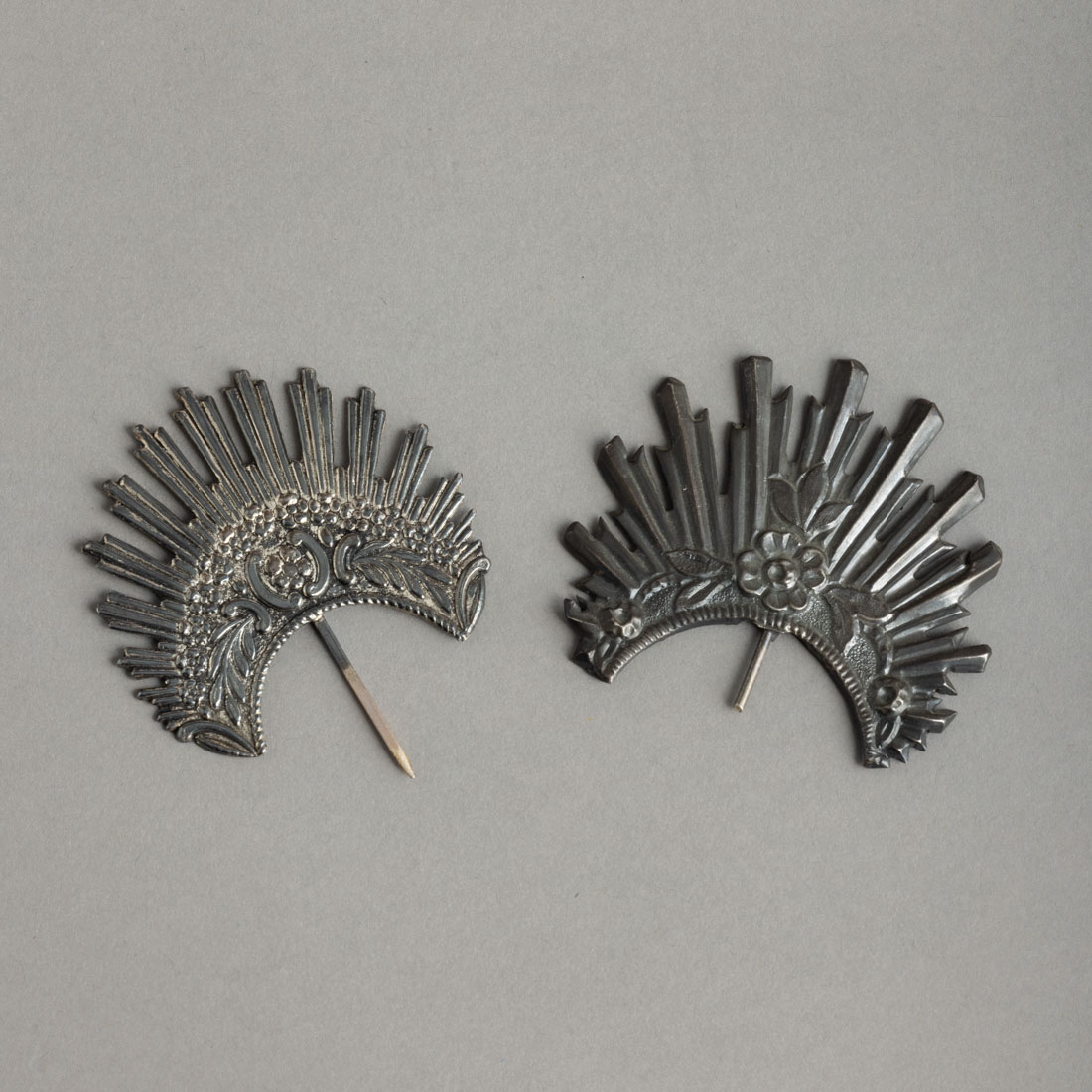 Em prata decoração recortada e relevada "elementos vegetalista". Sem marcas, ao abrigo do Decreto-Lei n.º 120/2017. Sinais de uso e um com leve amolgadela.