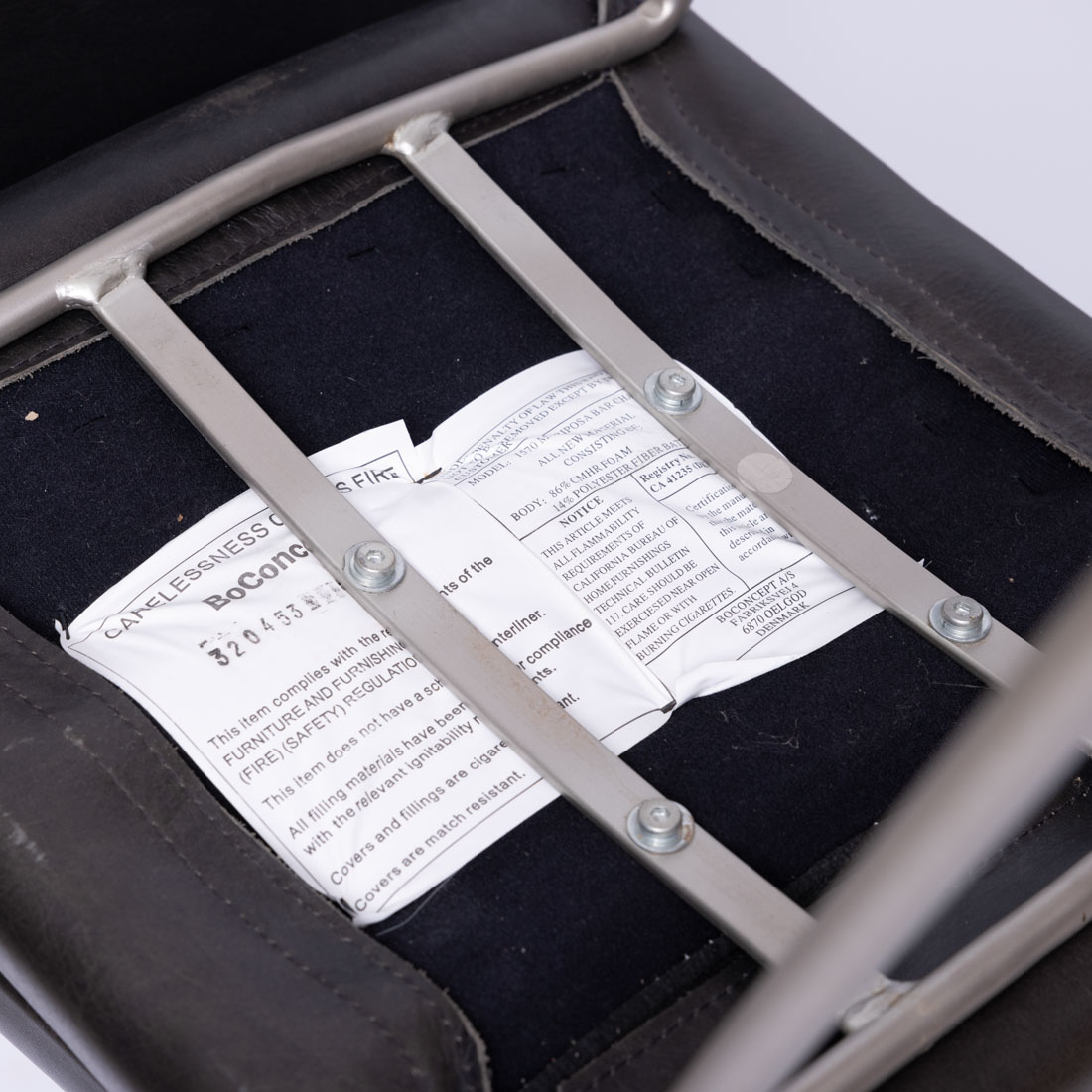 Em metal e outros materiais, com banco estufado a pele. Marcadas. Dinamarca. Sinais de uso e defeitos.
