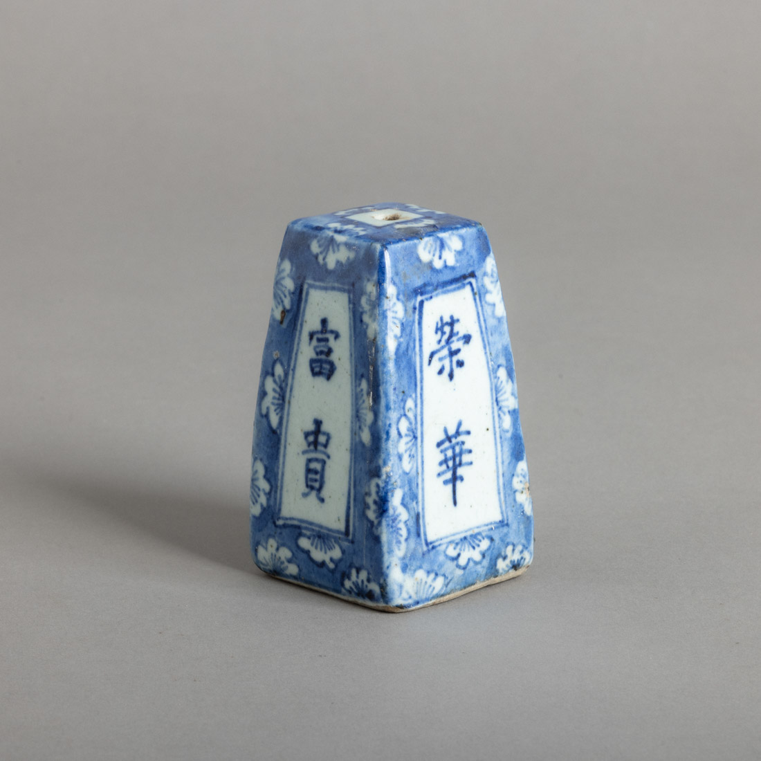 Em porcelana da China, decoração a azul "flores e caracteres". Sinais de uso.