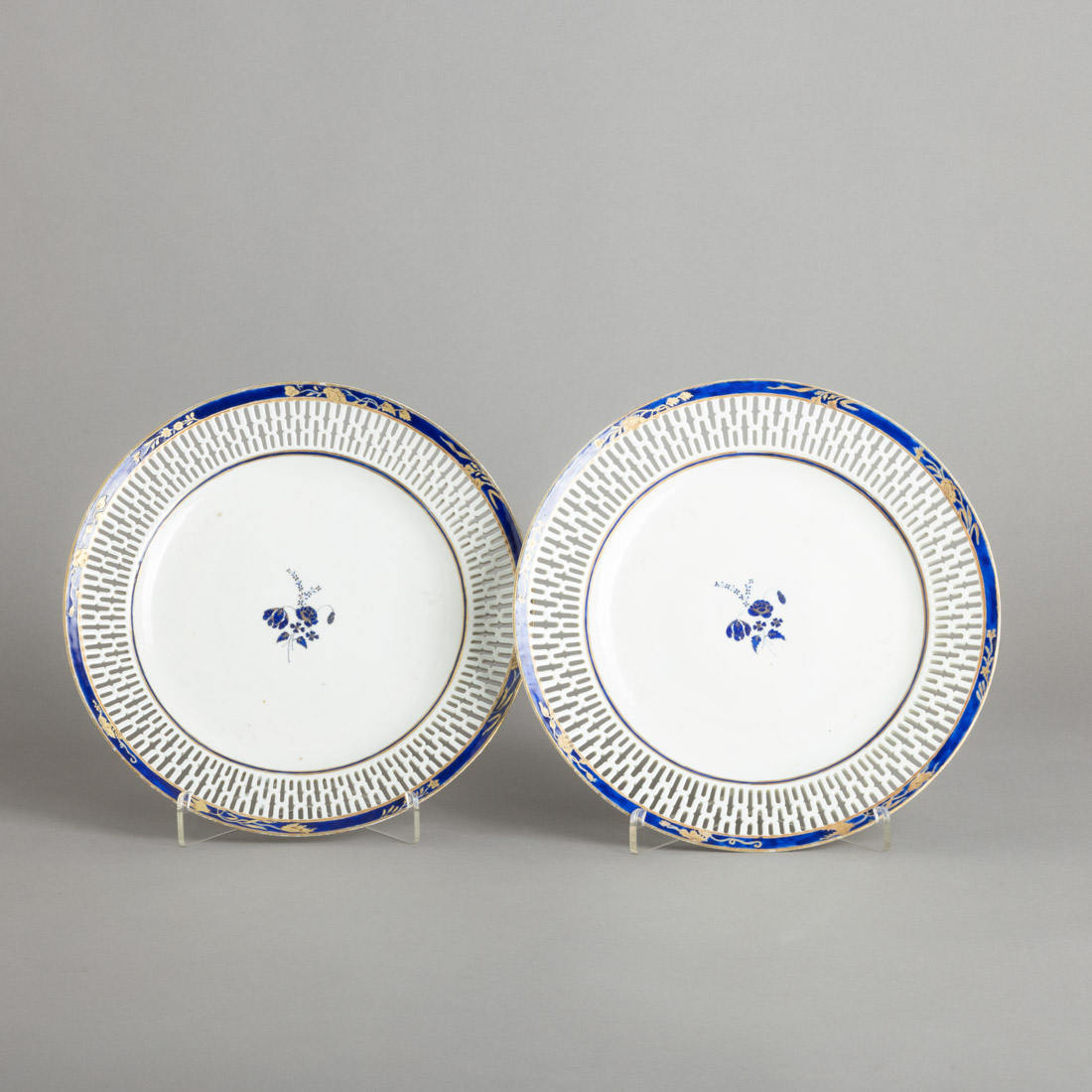 Em porcelana da China, Companhia das Índias, Séc. XIX, decoração a azul e a dourado "flores", aba vazada. Sinais de uso e leve desgaste no dourado.