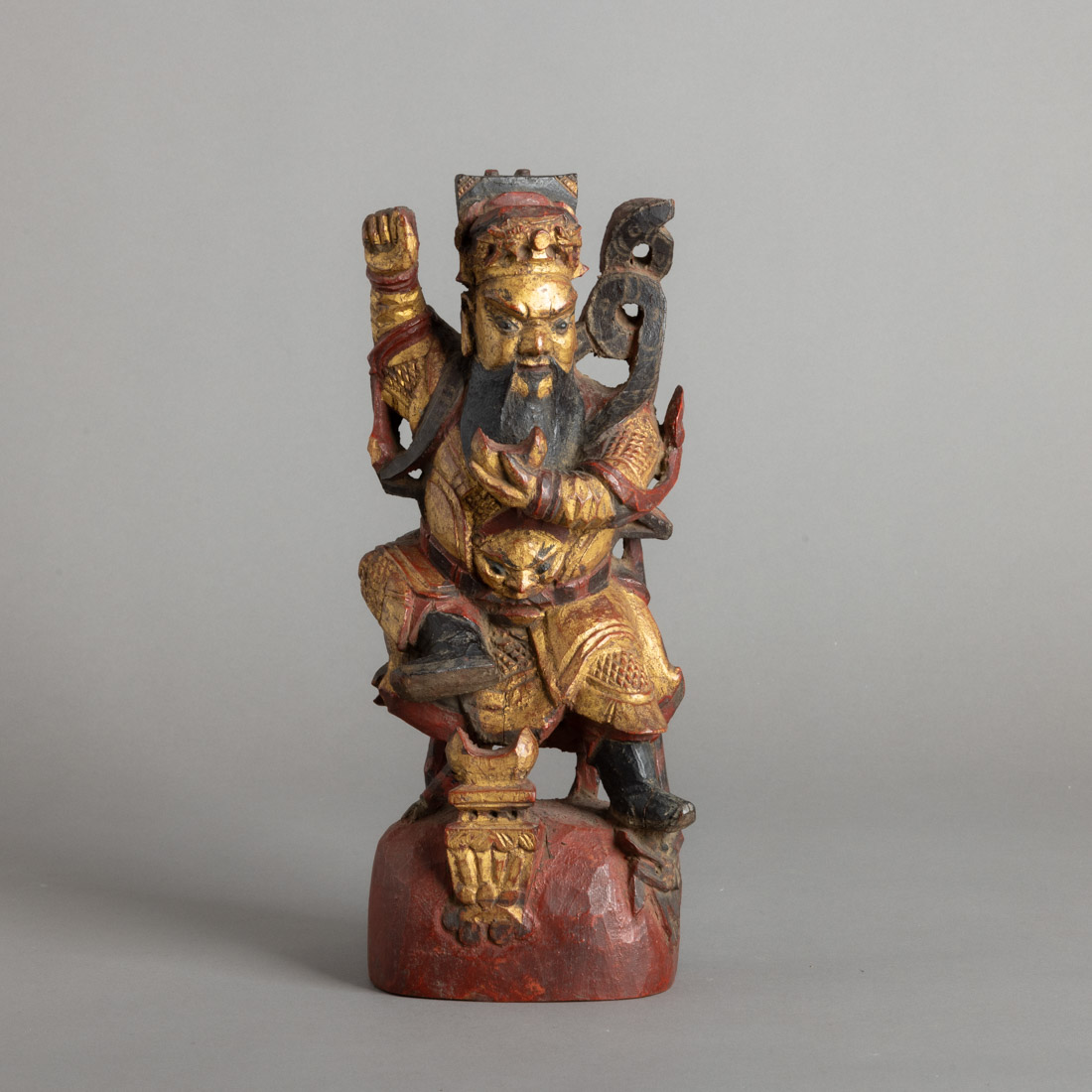 Escultura em madeira pintada e dourada. Pequenas falhas e pequenos defeitos.