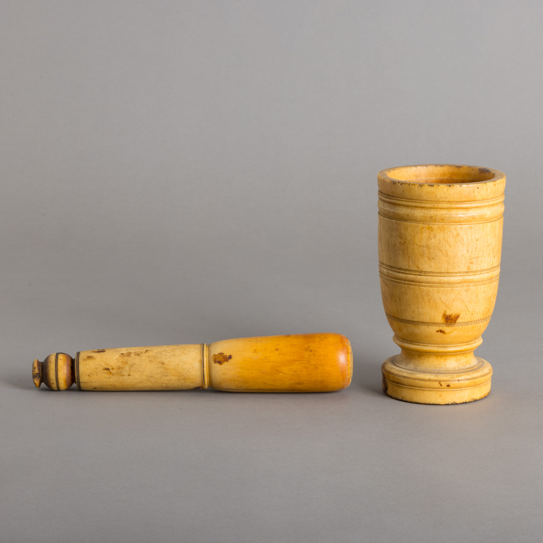 Em marfim torneado com anéis. Séc. XVII. Pequenos defeitos e mão com falhas.