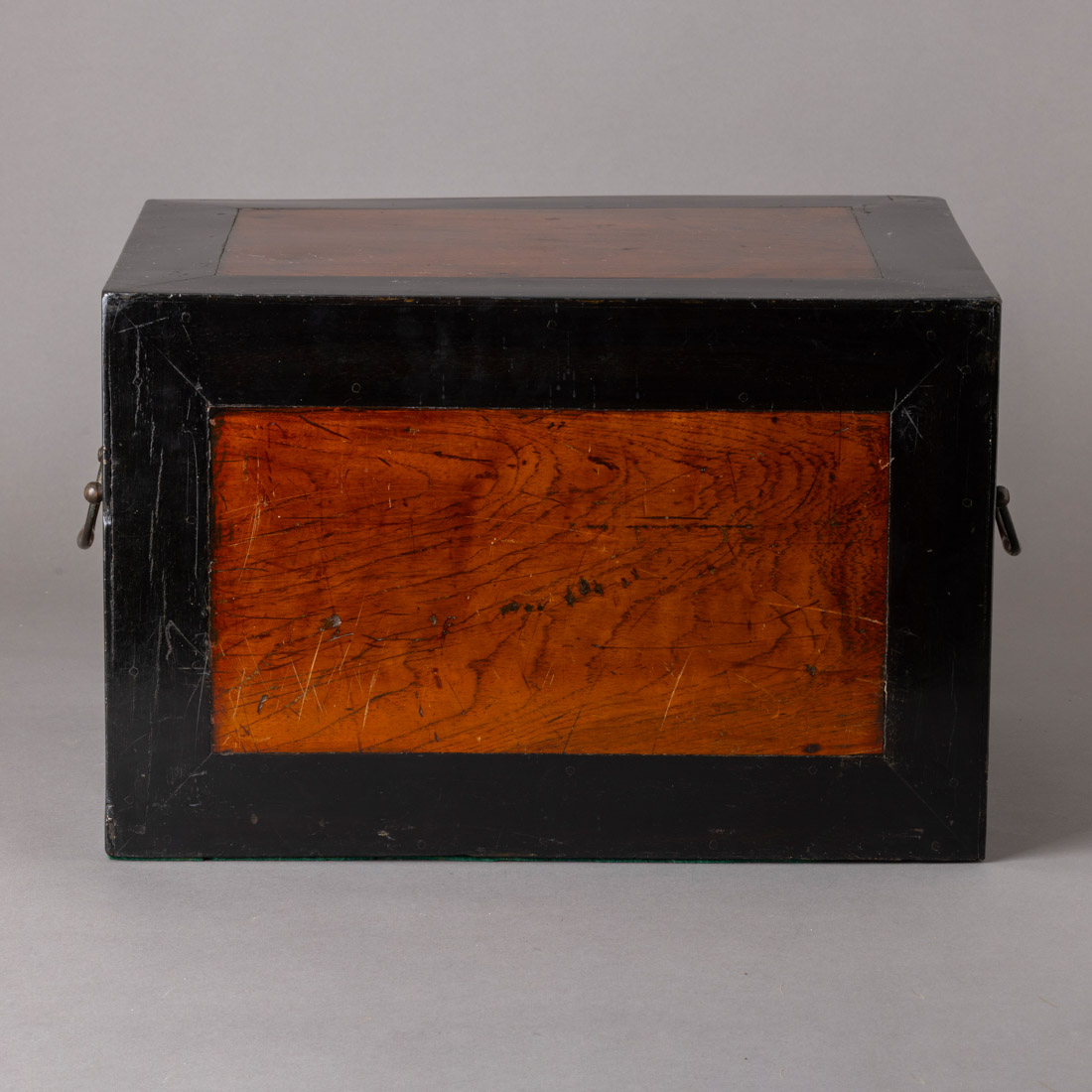 Em teca parcialmente revestido a ébano decoração de oito gavetas simulando dez. Séc. XVII/XVIII. Restauros, pequenas falhas e defeitos.