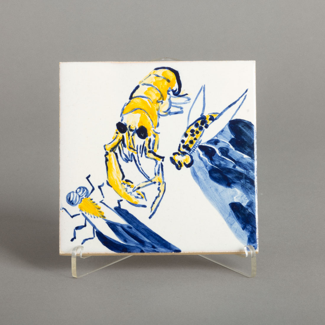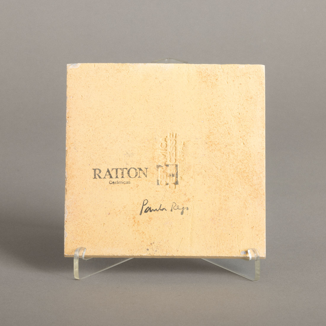 Em cerâmica vidrada decoração policromada, editado por Cerâmicas Ratton, marcado e assinado no verso a carimbo.