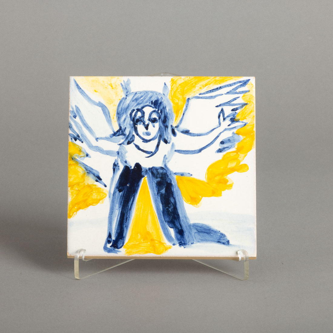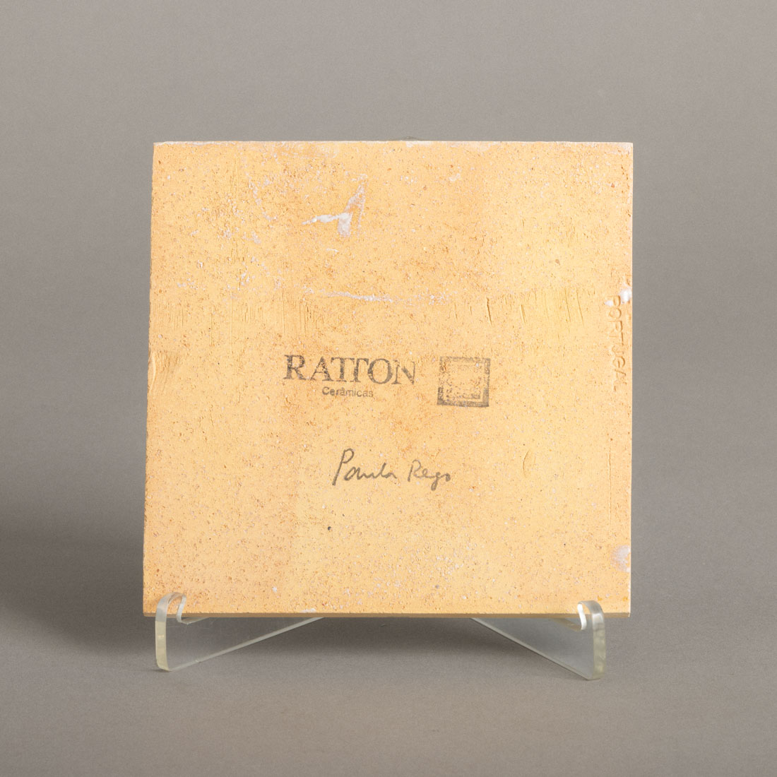 Em cerâmica vidrada decoração policromada, editado por Cerâmicas Ratton, marcado e assinado no verso a carimbo.