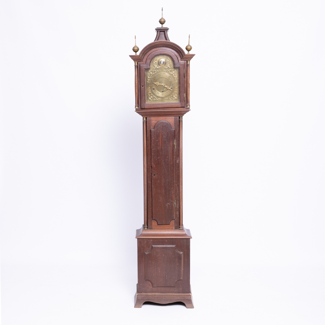 Caixa em mogno, máquina da Boa Reguladora, mostrador em metal amarelo com numeração romana. Pequenas falhas e defeitos.