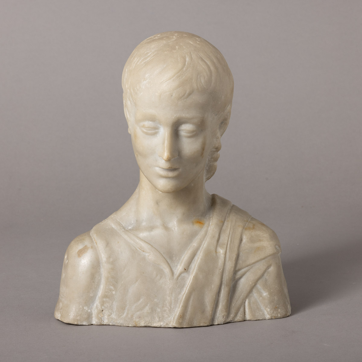 74. BUSTO FEMININO Email 200 Escultura em mármore. Pequenas falhas e defeitos.Dim.: 25,5 cm. € 200 € 200 Solicitar informação adicional Voltar a: 2025 | 2º Leilão Presencial 73. FIGURA FEMININA 75. SEREIA COM GOLFINHO Escultura em mármore. Pequenas falhas e defeitos.Dim.: 25,5 cm. € 200 € 200